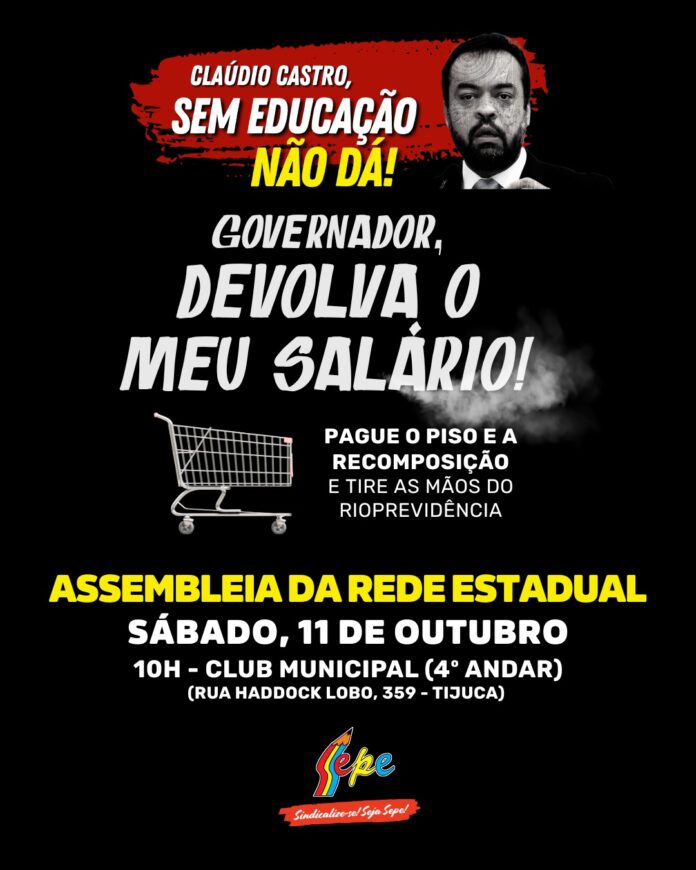 Vamos à luta para exigir de Castro o pagamento do piso nacional e as parcelas não pagas da recomposição salarial. Governador, a Educação precisa ser prioridade. Devolva nossos salários e tire as mãos da Previdência!