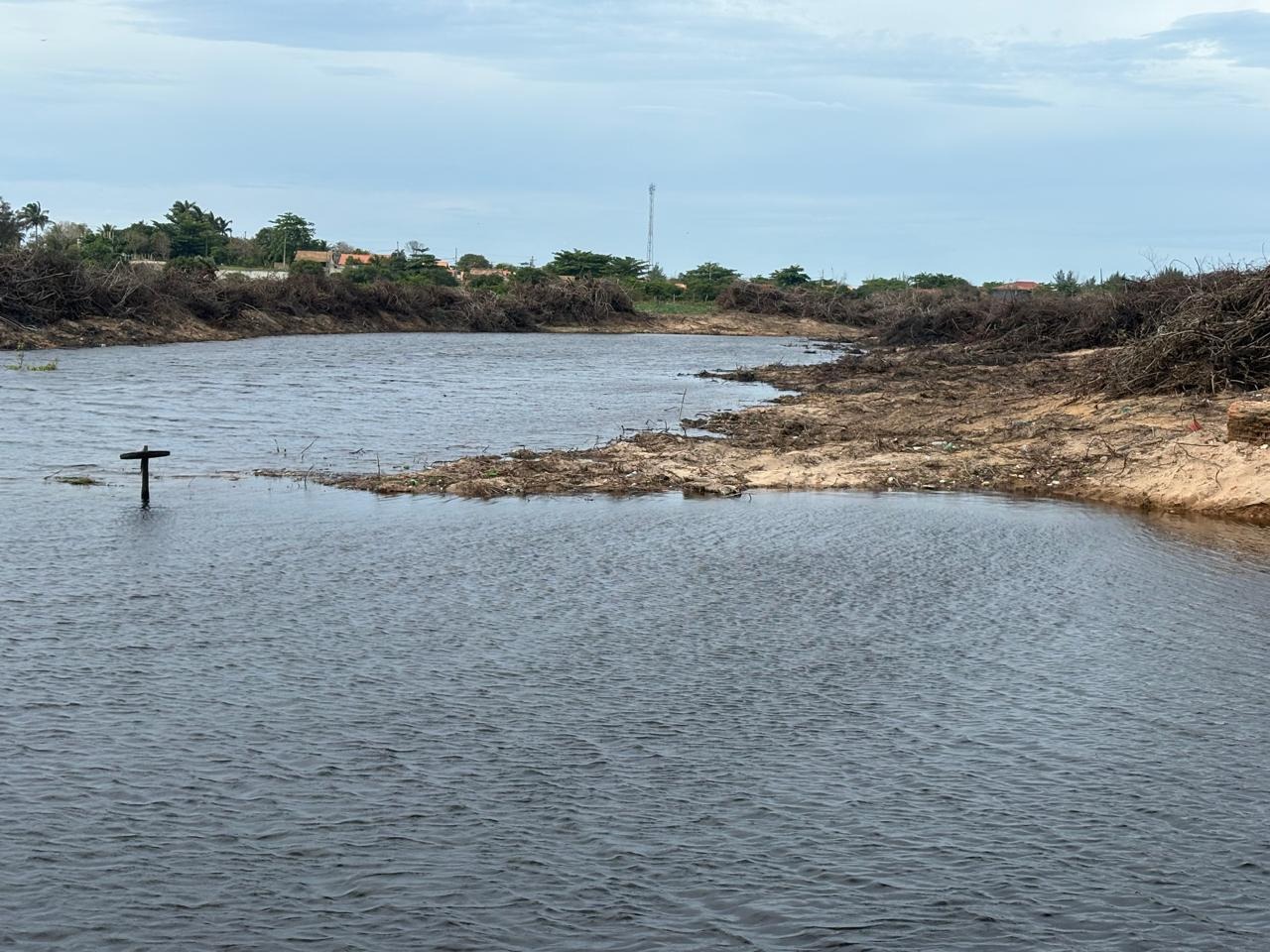 A estabilização da lâmina d`água afogou as plantas de mangue, obrigando-as a desenvolverem processos de adaptação num ambiente hostil. Diante de tanta reclamação do pesquisador que escreve este texto, a empresa retirou o vertedouro por ordem do órgão estadual de ambiente e o córrego voltou a escoar água doce para o mar, recebendo água salgada das marés.