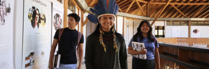 Estudantes indígenas na UnB: cenas assim aospoucos tornam-se mais comuns no meio universitário brasileiro. O reconhecimento, por parte da academia, do protagonismo dos nossos povos originários no esforço de regeneração planetária é parte de uma conscientização de que a diversidade de formas de existir e conhecer o mundo é fundamental para a vida na Terra perseverar. Imagem: Divulgação UnB