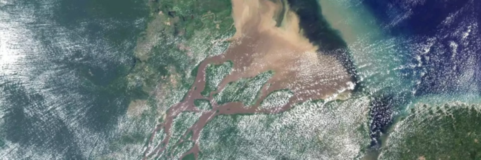 Na Foz do Amazonas, a enorme quantidade de água doce que o rio despeja no oceano forma uma vasta “mancha” que se espalha pela superfície do mar. Essa água carrega grande quantidade de matéria orgânica, tanto em partículas visíveis quanto dissolvida, além de sedimentos finos que ficam em suspensão.